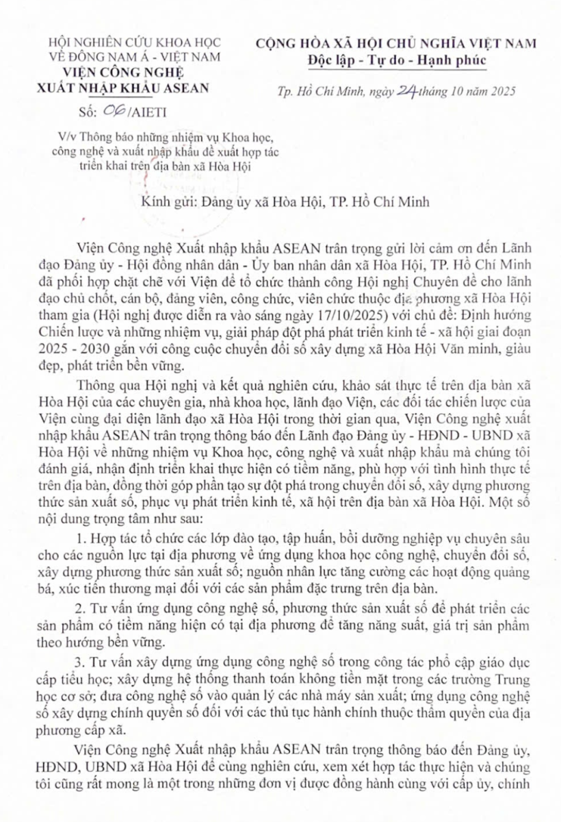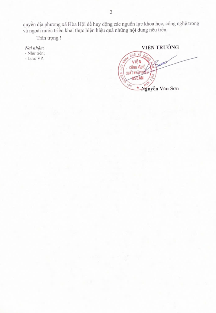 Thông báo những nhiệm vụ Khoa học, công nghệ và xuất nhập khẩu đề xuất hợp tác triển khai trên địa bàn xã Hòa Hội